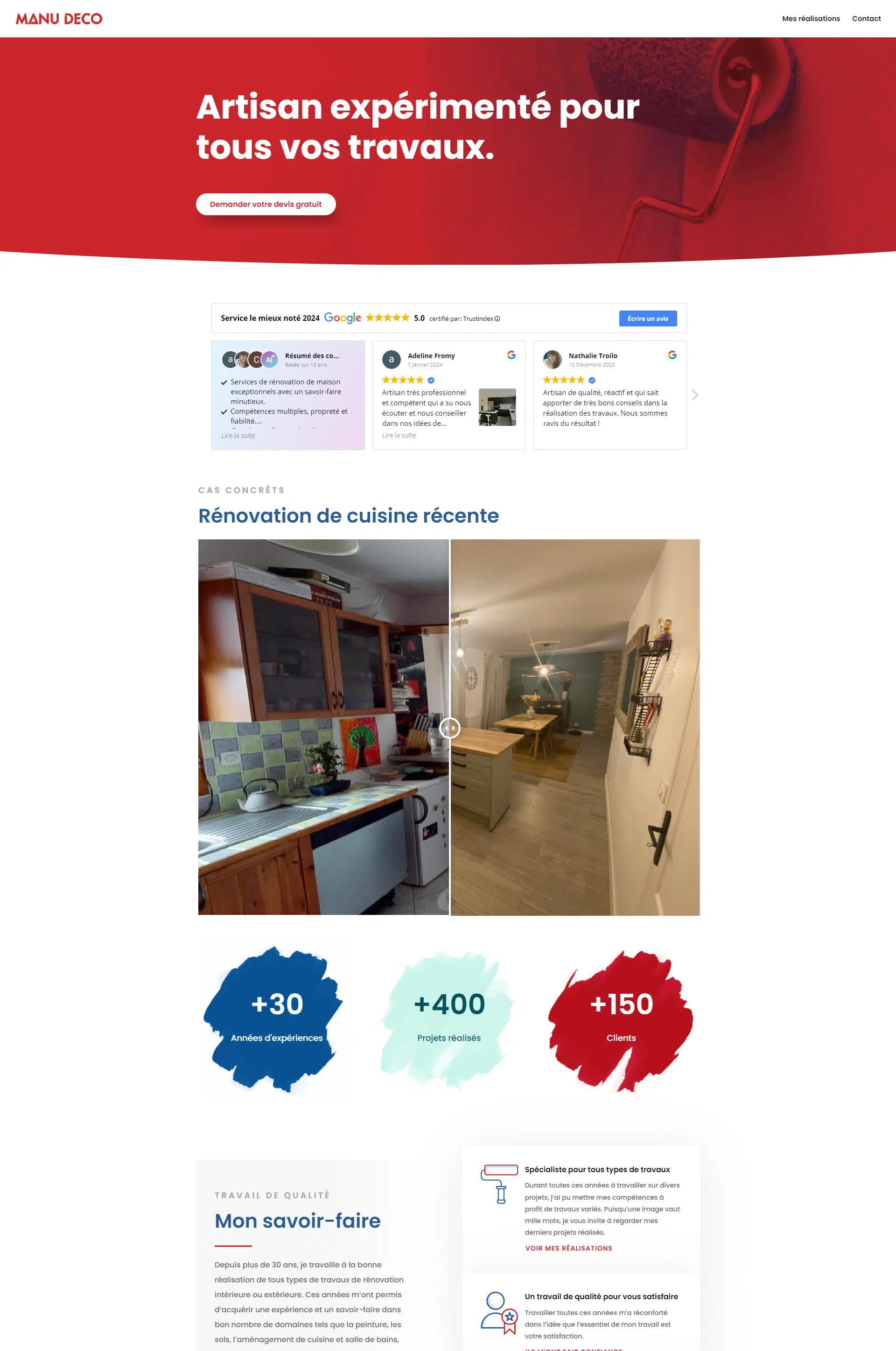 Développement du site vitrine pour Manu Deco, artisan spécialisé dans la rénovation d’intérieurs.